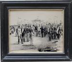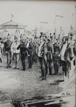 Original ink drawing by listed Czech painter and illustrator Emanuel Bohác (1867 Tabor - 1940 Praque) depicting the visit of Austrian emperor Franz Joseph the world exhibition in Vienna 1873. The artist studied at the Academies in Vienna and 1884-87 in Praque.