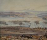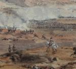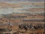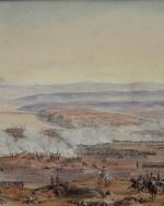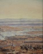 This extreme rare and finely detailed military watercolour depicting episode from the Battle of Austerlitz, also known as the Battle of the Three Emperors, was one of Napoleon`s greatest victories, where the French Empire effectively crushed the Third Coalition. On 2 December 1805, commanded by Emperor Napoleon I (his ridding figure you can see on the watercolour in the foreground left from other figures of his generals), decisively defeated a Russian-Austrian army, commanded by Tsar Alexander I and Francis I (Francis II of Holy Roman Empire).The French victory at Austerlitz effectively brought the Third Coalition to an end. On 26 December 1805, Austria and France signed the Treaty of Pressburg, which took Austria out of the war, made Austria cede land to Napoleon´s German allies. Russian troops were allowed to head back to home soil. Victory at Austerlitz also permitted the creation of the Confederation of Rhine, a collection of German states intended as a buffer zone between France and central Europe. In 1806, the the Holy Roman Empire ceased to exist when Holy Roman Emperor Francis II kept Francis I of Austria as his only official title. These achievements, however, did not establish a lasting peace on the continent. Prussian worries about growing French influence in Central Europe sparked the War of the Fourth Coalition in 1806.The author of this watercolour , famous French battle painter Theodore Jung (1803 Strasbourg - 1865 ibid) studied by G.Guerin in Starssbourg and Simon Fort in Paris, worked in Paris as employed by Depot de la Guerre of War Department exhibited his battle scenes, especially with motifs from French battles 1805-1814 in Salon de Paris 1834/1864 (mostly in watercolor), also known with brochures from battle field locations. A number of these watercolors in the Museum of Versailles, in the Depot de la Guerre of the war ministry, in Musee de l´Army in Paris and in private estates in Paris and Strasbourg.Provenance: Paris noble private estate.