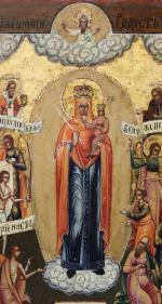 Depicts the Most Holy Mother of God, Joy of All Who Sorrow. Purchased from the Galerie Mikael in Strasbourg in the 1980s.