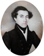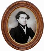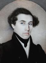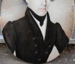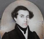 High quality early portrait miniature of a young gentleman executed in 1827 by listed Austrian-Hungarian portrait and miniature painter Adolf Ruprecht ( died 1832) , who was active in Vienna and Budapest in the first third of 19th century.