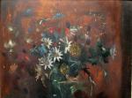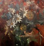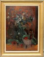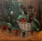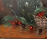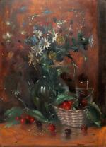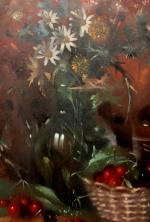 Summer still life with daisies and cherries was executed by Czech listed painter Vladimir Ruzicka (born 1954 Praque).