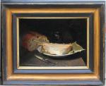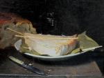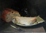 One of the pair (for second one see previous item No.) . Still life with bread and cheese, signed Beraud, was executed on the turn of 20th Century in the style of well-known French painter Henri Fanrin-Latour (1836-1904).
