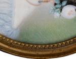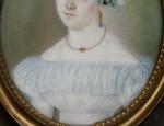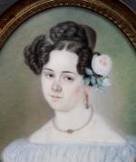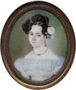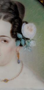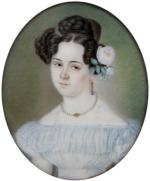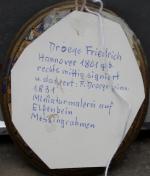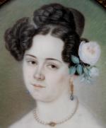 Miniature portrait with a fine, enamel-like touch in fresh colors, sign.&dated 1831 by German miniature painter Friedrich Droege (1801 Hanover - after 1854 London). Represented at the Berlin Academy exhibition from 1828 to 1830 with miniature paintings after Guido Reni, Sassoferrato, Caspar Netscher, and Willem van Mieris, and from 1832 to 1846 with his typical miniature portraits, especially of the Royal Prussian family. Droege was court painter to the King of Prussia. From 1851 to 1854 he lived in London and exhibited at the Royal Academy of Arts.