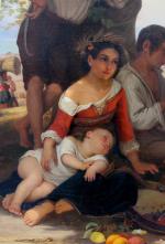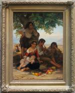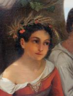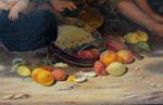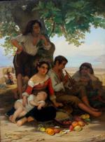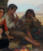 Genre scene with italian children was executed in Rome in 1841 by German portrait, historical and genre painter Julius Moser (1805 (another source 1808 in Gumbinnen - 1879 in Berlin ). Julius Moser attended the Gymnasium in Königsberg . 1831-1836 he studied at the Berlin Academy of Art history and genre painting . He was a pupil of Wilhelm Hensel . In the years 1837 to 1840 he lived in Paris and was a pupil of Léon Cogniet (1837-1838 ) and 1838-1840 student of Paul Delaroche . 1840-1848 he was in Rome . Moser was a member of the Ponte Molle Society and was one of the founders of the German Artists Association . Moser was of Jewish origin and buried in the Jewish Cemetery Schönhauser Allee in Berlin. He is mainly known as a portrait of the Berlin Jewish bourgeoisie of the mid-19th century. He is a typical representative of the Biedermeier . In the Jewish museum of Berlin are his several works, Jewish portraits and a study of Italian peasant boy.