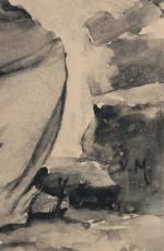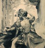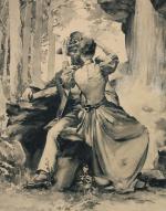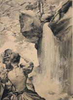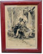 Genre scene with lovers at the waterfall was executed by good listed Czech academic painter and illustrator Kamil Vladislav Muttich, baptized Vladislav Jan, used the pseudonym Camil Orfano – Muttich (1873, Prague – 1924, Nymburk).