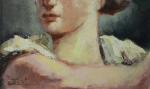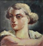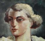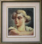 Modernist portrait by listed Swiss painter, glass painter and and graphic artist Oscar Cattani ( 1887 Stans - 1960 Lucerne). Studied decorative arts from 1903 to 1905 at the Technikum in Winterthur. From 1905 to 1907, he trained as a decorative painter in Lucerne. He then studied again from 1907 to 1908 at the Knirr School in Munich; from 1908 to 1912 at the Kunstakademie (Art Academy) in Munich with Martin Feuerstein and Angelo Jank. From 1912 to 1913, he traveled to Italy, helping to restore mosaics in Ravenna. In 1913, he studied at Acad. Julian in Paris. In 1914, he became a drawing teacher in Immensee. From 1915 to 1917, he was a professor of art history, decorative composition, and graphic arts at the Technikum in Fribourg; from 1920 to 1933, he was a professor at the Ecole des arts appliqués in Lausanne. He created numerous works. Religious murals (including frescoes), altarpieces, mosaics, and stained-glass windows for churches and chapels; also still lifes, figurative works, and portraits (in oil and watercolour). His prints (historical, pictorial, and lithographic) include especially religious motifs and more than 100 designs for flags. He also illustrated Dante's Divine Comedy and a school textbook.