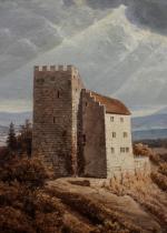 Extremely rare view of the Habsburg Castle in the Sqitzerland, original seat of the House of Habsburg.