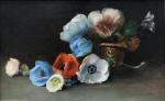 Still Life with Anemones was executed in 1896 by Dutch painter and watercolorist Marguérite Carolina de Clerq (Rotterdam 1857-1933 Hilversum). Marguérite de Clerq, born in 1857, specialized in still lifes, primarily flowers. In doing so, she followed in the footsteps of many flower painters before her, including Margaretha Roosenboom and Gerardine van de Sande Bakhuyzen. From 1887 onward, the painter lived and worked in Hilversum, concurrently with Margaretha Roosenboom for several years, from whom she may have been taught. In any case, de Clerq was influenced by her; her flower still lifes share the same impressionistic touch and free handling of the motif.