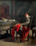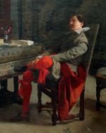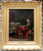 ” A moment of thoughtfulness”, this genre scene was executed in 1874 by French painter Édouard Charles Adolphe Steinheil (1850 - Paris - 1908). He owes his fame to the adventurous life of his wife, Marguerite Steinheil, and to the mysterious murder of which he was the victim, the Steinheil affair.