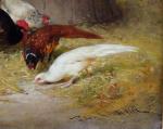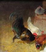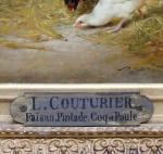 Nice painting with pheasants, chickens, rooster and duckin the barn was executed by good listed French landscape and animal painter Léon-Philibert Couturier (1823 Chalon-sur-Saone - 1901 Saint-Quentin/Aisne). He studied by Charles and Jean-Claude Nicolas Couturier; since 1844 - at the Fine art Academy in Paris by Francois Edouard Picot. Portraits, genre, since 1853 - country life and animalistic paintings. worked as illustrator by different magazines and news papers.