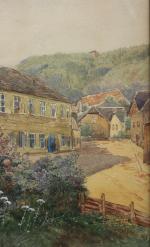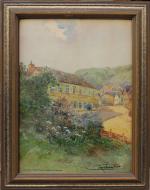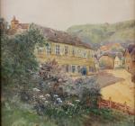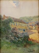 Landscape watercolour with motive from old Viennese Siemering was executed in 1918 by listed Austrian landscape painter Heinrich Wertheim (1870 or 1875 - 1945).