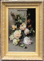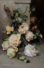 This nice flower painting with brunch of roses was executed in 1894 by good listed Spanish painter LUIS GRARITE Y TEJADA (Málaga, 1858 - Málaga,1901).