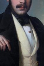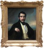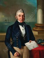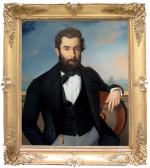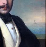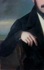 This portrait of a gentleman with sailing ships on the background was executed around 1830s and purchased together with another similar portrait of his relative in the private estate of Austrian noble family Galatti. Due to the family legend the another portrait, which was sold by us months ago. (see our last additional image) is to be said Michele Tomaso Galatti (born 1805 in Chios , died in Graz), the Gouverneur of Triest and Austrian Coast in 1830-1840.in this case our actual portrait can be of a relatives of this Gouverneur.