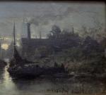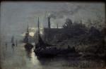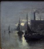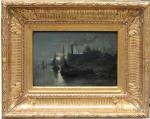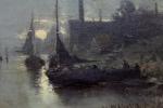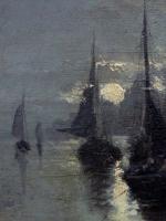 Moonlit coastal scene with fishing boats was executed by listed Belgian painter Edouard Moerenhout (1801 Antwerp - 1893) lived and worked in Antwerp.He was a painter of marine subjects.