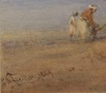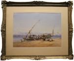 The author of this watercolour Bernhard Fiedler (1816 Berlin - 1904 Triest) was famous landscape and oriental painter , studied at the Berlin Art Academy and was also a pupil of decoration painter Johann Gerst and marine painter Wilhelm Kraus. After his study and life in Venice, Triest and Dalmacia in 1843 , he recieved the prohibiton from King Friedrich Wilhelm IV to paint castles of Count Coll´Alto in Friaul. In 1848 he was a drawing teacher by Great Duchess Charlotte, wife of austrian Duce Maximilian ( later King ofMexico ) in Triest. Also later Fiedler settled in Triest and worked for noble houses of Austria and Prussia. In 1853 he accompanied the ambassador Karl Ludwig von Bruck in travel to Constantinople. In 1854 on prohibiton of prussian king Fiedler travelled to Asia Minor, Syria, Palestina and Egypt . Same route he made with Duke of Brabant ( next King Leopold II of Belgium). Next orient travells artist made untill 1882. Afterthen he lived till his death in Triest. He took part in the regular exhibitons in Austria and Germany. Bernhard Fiedler is one of the most important austrian romantical orientalists. His biography can be find in the exhibition catalogue ( in german) " Orient . Austrian Painters 1848 - 1914 " , Residenz gallery , Salzburg, 1997 and in the lexicon "Austrian Artists of 19th century" by Prof.H.Fuchs, Viennna, 1975.