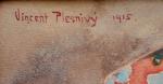 Portrait of Moravian-Slovak peasant woman was executed in 1915 by Czech genre portrait painter Vincent Plesnivý (1879 Prague - 1944), Prague Student of the Prague Academy (1900-1901). Then studied with Prof. H. Knirr in Munich. He spent a year in Paris. Painter, figurative artist. He worked mainly in the Moravian Slovak region. The highest price achieved for a work by this author at auction: 28,000 CZK.