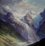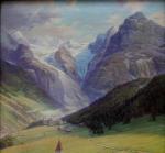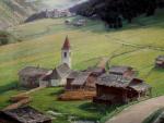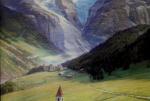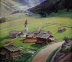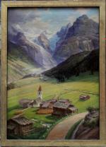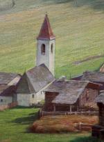 View of the South Tirolian mountain and ski area village Trafoi am Ortler was executed in 1925 by listed Austrian landscape and cityscape painter Karl Leitner , who worked in Austria from 1910 to 1925.
