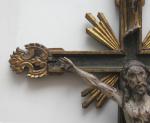 Masterfully hand-carved wooden crucifix on the wooden cross, 17th century, probably Spanish. Religious art with very details.