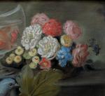A pair of still lifes with flowers, fruits and a glass with fishes was executed in 1876 and 1877 by good listed painter of dutch origin Leopold von (van) Stoll (b.1808). He was active in 1828 in Warsaw and Cracov and in 1830 - 1834 in St. Petersburg , where he was busy designing floral arrangements for the Botanic Gardens. In 1834 the artist came back to Austria to get popular acclaim for his wonderful paintings of flowers and fruits. Ermitage in St.Petersburg have a few his still life and flowers paintings in the collection ( Cataloque of Ermitage , 1901).
