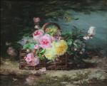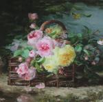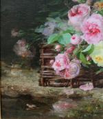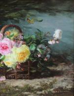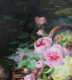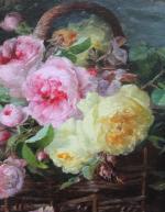 Impressionistic still life of roses in a basket was executed by good listed Frwnch female painter of flowers Marie Hodieux ( Mme Beloux- Hodieux), born 1860 in Lyon, died 1897 in  Paris.
