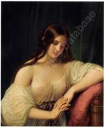Natale Schiavoni is claimed by Perkins to be a distant descendant of Andrea Schiavoni, the Venetian painter. In Venice, he trained with Francesco Maggi Otto, and later came under the influence of the Neoclassicism.He was peripatetic, traveling in 1800 to Trieste, and in 1810 to Milan, where he painted Eugene Beauharnais and the royal family. In Milan, he was able to frequent the studios of Appiani, Longhi, and Sabatelli. In 1816, Schiavoni was invited by the Austrian emperor to Vienna, to become the official portratist for the court. From there, he returned to Venice in 1821, where he became professor at the Academy of Fine Arts. He resided in the Palazzo Giustinian on the Grand Canal. He was awarded with a gold medal at art exhibition in Brussels. Among his works are a Penitent Magdalene (1852) once on display in the National Gallery of Berlin; a painting on the same subject at the Vienna Museum; a Bacchante, once on display at the Stadel Gallery in Frankfort; and at Adoration of Shepherds, once on display at the British Museum, London. Hey was described by Pietro Selvatico as in coloring, highly skillful, but in shading, inimitably supreme.Natale Schiavoni was highly successful painter and engraver who created numerous works to the taste of the audience. In addition to many portraits he became known for his sexy girls figures and odalisques.