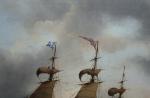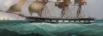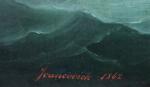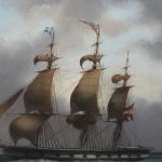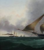 This marine painting was executed in 1862 and depicts three-master frigate ” SMS Adria” and other ships of Austrian-Hungarian Navy in the Adriatic. SMS Adria was the second of three Radetzky-class screw frigates built for the Austrian Navy in 1856-1857. This ship sailed as naval cadet futured Commander of Austrian Navy Wilhelm von Tegetthof and this ship took part in the battle by Lissa under his command.