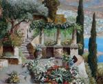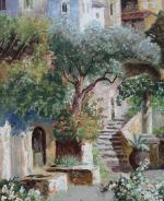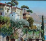 This colourfully painting with panoramic view of Sorrento coast was executed in the early 20th century by renowned and good listed Austrian landscape painter Alois Arnegger (1879-1967). The artist studied at the Vienna Academy under R. Russ and Eisenmenger and became his glory and popularity among collectors around the world for his panoramic italian views and landscapes from Alps. Other works by A. Arnegger see under item numbers: 4978, 5493, 5494, 5847, 6702, 6950 und 7189.