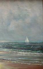Impressionistic seascape was executed in 1930s by important Russian-French regisseur, playwright, creator of an original theater theory, theater historian, philosopher and actor, musician, painter , and psychologist Nikolay Nikolaevich Evreinov (1879 Moscow – 1953, Paris).