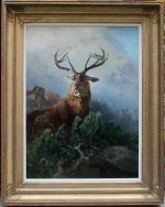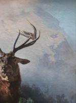 Monumental painting with Royal deer was executed by good listed Austrian landscape, hunting and animale painter Anton Schödl (1823 Schwechat - 1906 Vienna).