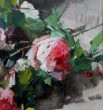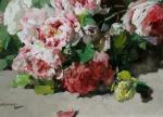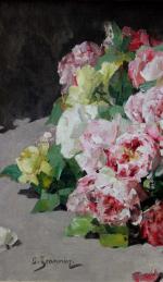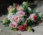 Still life with scattered roses was executed in last quarter of 19th century by famous French still life painter Georges Jeannin (1841 - Paris - 1925). . He was a pupil of Vincelet and went on to be a most prolific and popular flower painter. Known for his still lifes, Jeannin debuted at the Paris Salon in 1868 where he exhibited regularly. The French State bought many of his flower paintings. In conjunction with A. Cesbron he decorated the Salon de Passage in the Hôtel de Ville in Paris. He was the chairman of the Societe de Peintres de Fleurs and he was conferred with the award of Chevalier de la Legion d’Honneur in 1903. This is the highest honor that a civilian can be awarded in France.
