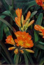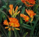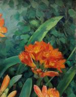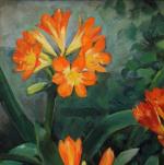 Painting with Clivia flowers was executed by Austrian landscape and portrait painter of Impressionism Georg Gerlach ( 1874 Berlin - 1962 Vienna).