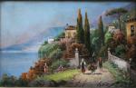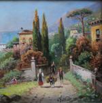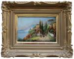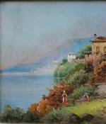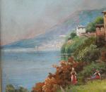 Coastal scene at a North Italian lake (Como, Garda) was executed on the turn of 20th century by an Italian landscape Pinter , signed Voltini.