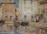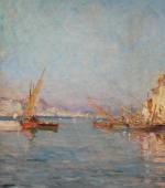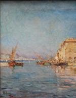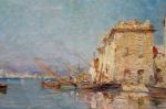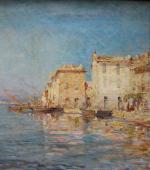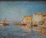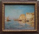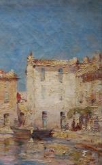Post-Impressionist view of pittorescue village and port Martiques in the south of France was executed on the turn of 20th Century by good listed French painter Charles Malfroy (1862 - 1918), a native of Lyon, specialized in views of the Mediterranean harbors, and one of Martigues in particular, he liked to paint along its banks. Martigues, known as the “Venice of Provence”, located on the edge of the Etang de Berre and Caronte Canal, which connects the lake to the Mediterranean, and especially its port then inspired many artists in the mid-nineteenth century, such Raymond_Allègre (1857-1933), Henri Théophile Decanis (1847-1917) and of course Felix Ziem (1821-1911) who established there his workshop. Charles Malfroy himself settled in Martigues his studio, which was taken in the first half of the twentieth century by his son Henry Malfroy. As a follower of the post-impressionist artist Jean-Baptiste Olive (1848-1936), a maritime landscape painter from Marseille, Charles Malfroy was much appreciated for his clear tones and his ability to deal with the Mediterranean light, subtly transposing on his palette the sky and the sea. From Le Havre to Venice, he painted tirelessly in an almost unreal clarity atmospheric effects arising from the merging of these elements.