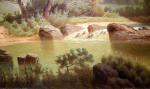 Country landscape with a lake and peasants on the way home was executed ca. in 1860s-1870s , signed J.Rüger and framed in wonderful original 19 century gold-plated ftame.