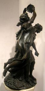 Large bronze figure executed in 19th century after terracotta model by Claude Michel (1738 - 1814), known as Clodion, famous French sculptor of the Rococo style. He was born in Nancy. Here and probably in Lille he spent the more earlier years of his life. In 1755 he came to Paris and entered the workshop of Lambert Sigisbert Adam, his maternal uncle, a clever sculptor. He remained four years in this workshop, and on the death of his uncle became a pupil of J.B. Pigalle. In 1759 he obtained the grand prize for sculpture at the Academic Royale; in 1761 he obtained the first silver medal for studies from models; and in 1762 he went to Rome. Here his activity was considerable between 1767 and 1771. Catherine II which eager to secure his presence in St Petersburg, but he returned to Paris. Among his patron, which were very numerous, were the of chapter of Rouen, the states of Languedoc, and the Direction of generale. His works were frequently exhibited at the Salon. In 1782 he married Catherine Flore,a daughter of the sculptor Augustin Pajou, who subsequently obtained a divorce from him. The agitation caused by the revolution drove Clodion in 1792 to Nancy, where he remained until 1798, his energies being spent in the decoration of of houses. Among Clodion´ s works acres A statue of Montesquieu, A Dying Cleopatra, and A chimneypiece present in the South Kensington museum. One of his last groups represented Homer as a beggar being driven away by fishermen (1810). Clodion died in Paris, on the eve of the invasion of Paris by the forces of the Sixth Coalition. Among the public collections holding works by Claude Michel are theArt institute of Chicago, the Bowes museum (County Durham, UK), the Carnegie museum of art (Pittsburgh, Pennsylvania), the Cleveland museum of Art , the Courtauld Institute of Art (London), the Currier museum of Art (New Hampshire), the Detroit institute of Art, the Fine Art museum in San Francisco, the Frick Collection (New York city center), the Getty museum (Los Angeles), the Honolulu Academy of art , the Kimbell art museum (Fort Worth, Texas), art Indeks Danmark, the Louvre, the Metropolitan museum of Art, Musée Cognacq Jay (Paris), the museum of Fine Art, Boston, Musée Beaux Arts (Bordeaux), national museum of art (Cluj Napoca), the National Gallery of Armenia, the National Gallery of art (Washington D.C.), the Norton Simon museum (Pasadena, California) and the Philadelphia museum of art.