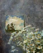 Post-Impressionist painting with field flowers was executed in 1988 by unknown Russian painter of Korean origin (due to the signature), signed@dated in Cyrillic.