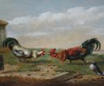 Animalistic painting with poultry yard was created by famous Belgian painter Frans van Severdonck (1809 - Brüssels - 1889). The Belgian painter Franz van Severdonck was born in Brussels, where he lived and worked all his life. It is not yet known, where the artist was trained, but his high compositional and technical skills allow the assumption of a professional training. Franz van Severdonck was a master of animals and created numerous compositions with sheep, horses and chickens. His usually small-sized depictions are highly sought after collectable items on the international art market.