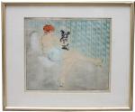 Lovely genre scene with a girl and her favorite dog by listed Austrian graphic artist Vala Moro ( born 1907 ), worked in Vienna in 1930s and created number of erotic drawings and etchings. For other her works see item No. 1270, 2313, 2315, 4573, 4574.