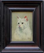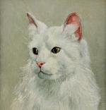 Portrait of a white cat by listed Austrian genre and portrait painter Max Sandor-Duschnitz (1897 - Vienna - 1942).