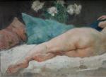 Modernist painting with reclining nude was executed by listed French painter and graphic artist Yves (1892 - Paris - 1984). Especially nudes paintings, genre scenes , landscapes.