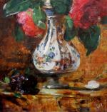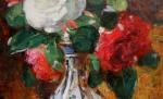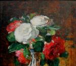 Impressionistic painting with a vase of roses was executed by good listed French painter François Vernay, pseudonym of Francis Miel (1821 - Lyon - 1896).