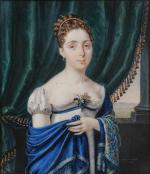 High quality portrait miniature of a young lady was executed in 1813 by good listed French portrait and miniature painter Balthasar Charles Larpenteur (1783 Versailles - 1843).