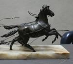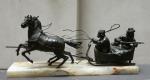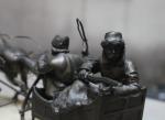 Russian bronze sculpture "Peasant cart with hunters shooting wolves" was executed in the late 19th century .