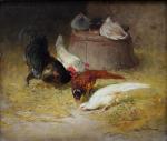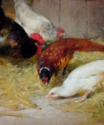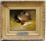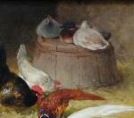 Nice painting with pheasants, chickens, rooster and duckin the barn was executed by good listed French landscape and animal painter Léon-Philibert Couturier (1823 Chalon-sur-Saone - 1901 Saint-Quentin/Aisne). He studied by Charles and Jean-Claude Nicolas Couturier; since 1844 - at the Fine art Academy in Paris by Francois Edouard Picot. Portraits, genre, since 1853 - country life and animalistic paintings. worked as illustrator by different magazines and news papers.
