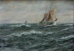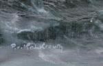 Large marine painting with sailing boats was executed by good listed German painter Patrick von Kalkreuth (1898 in Kiel - 1970 in Starnberg). He was the son of NN. Dunbar and the Elizabeth, née Block (1866–1931). His mother Elisabeth married the second marriage in Hanover in 1931 to the royal Prussian government assessor Dr. legal Richard von Kalckreuth (1878–?), First Lieutenant and Knight of Honor of the Order of St. John.Stepfather Richard von Kalckreuth adopted his wife´s two sons - Patrick, now 36 years old, and the younger Frederik - by contract dated April 4, 1935 at the District Court of Berlin-Charlottenburg.Patrick von Kalckreuth lived in Düsseldorf and Berlin, among other places, but the North Sea inspired his motifs. A landscape and marine painter, he became known for his oil paintings of surf and sea themes.