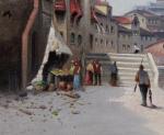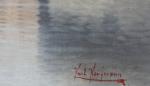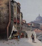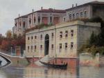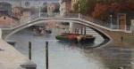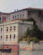 Venice view along a canal to the church of Santa Maria del Rosario was executed by well renowed and high quoted Austrian landscape and architecture painter Carl (Karl) Kaufmann (1843-1905). He studied at Vienna Academy and was active in Vienna in the 1900s. His Venice, Rome and oriental cityscapes brought him the world glory.