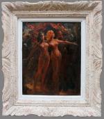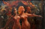 Inscription: illegible signed, on the back is title inscription in French: femmes au ..flamme ( in English: women with a flame).