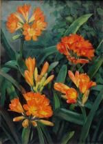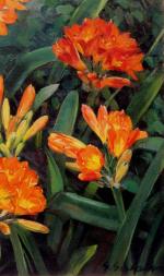 Painting with Clivia flowers was executed by Austrian landscape and portrait painter of Impressionism Georg Gerlach ( 1874 Berlin - 1962 Vienna).