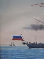 This ship sailed the Turku -Stockholm route under the Russian naval flag, since Finland was then a province of the Russian Empire. This painting was ordered by the renowned Genoese maritime artist Domenico Gavarrone in Genua, who was famous and popular with his portraits of famous ships on commission.