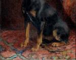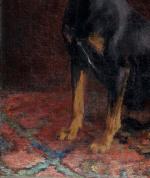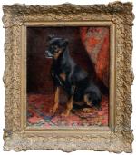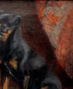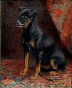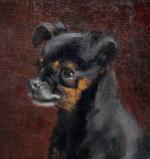 Portrait of a Japanese Chin-Pinscher was executed in the late 19th century by an European, due to the name Stock , probably, an English painter.